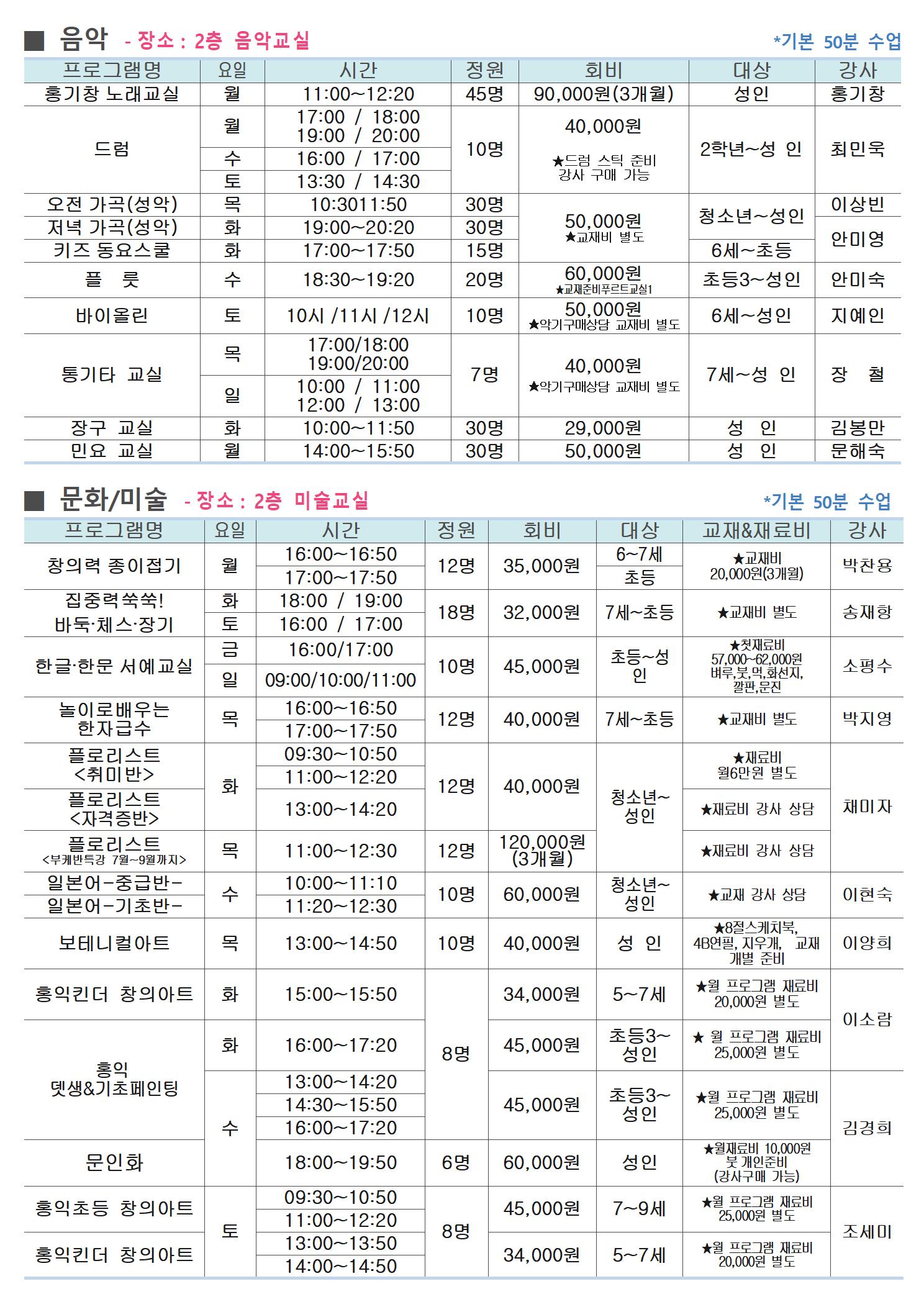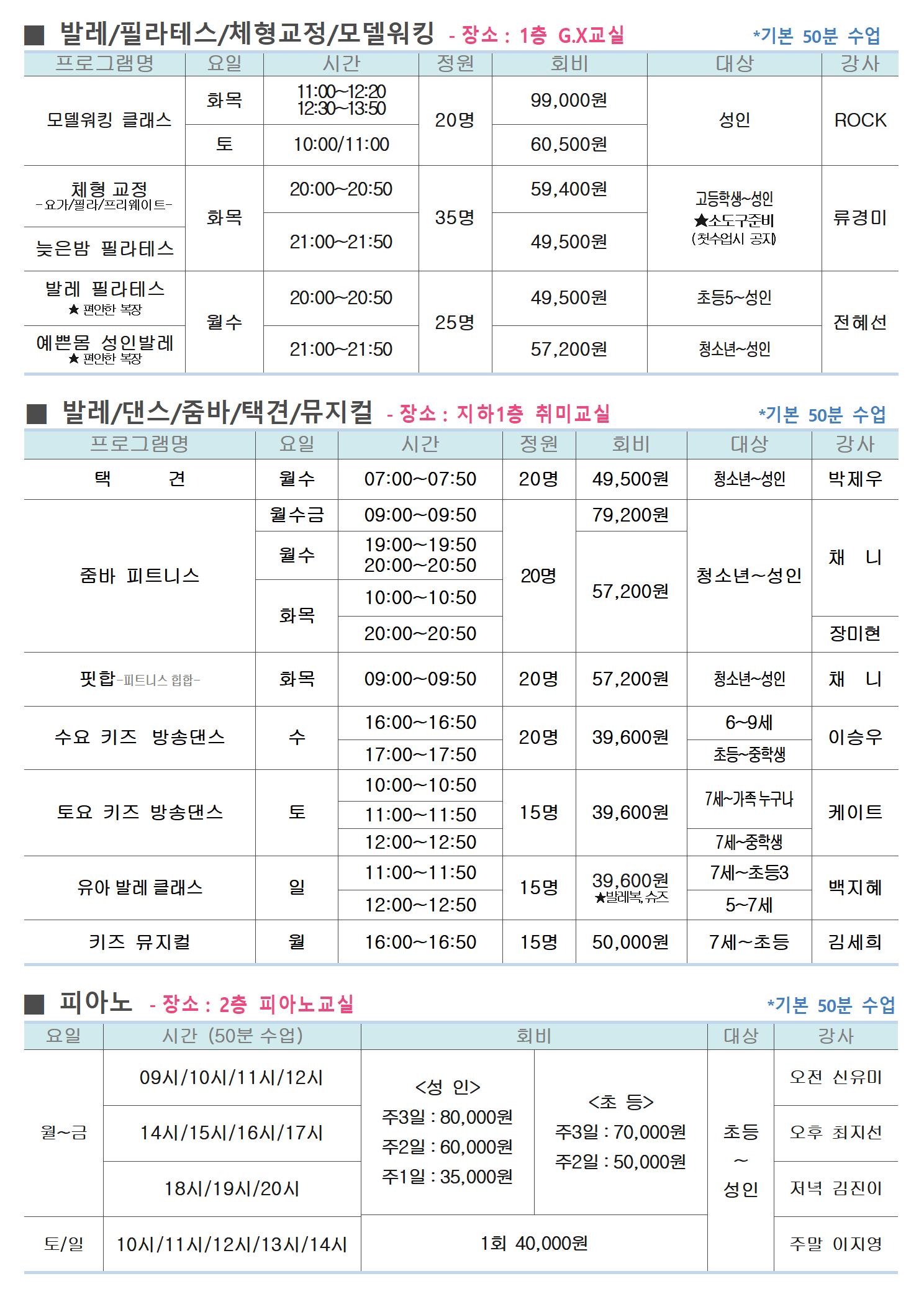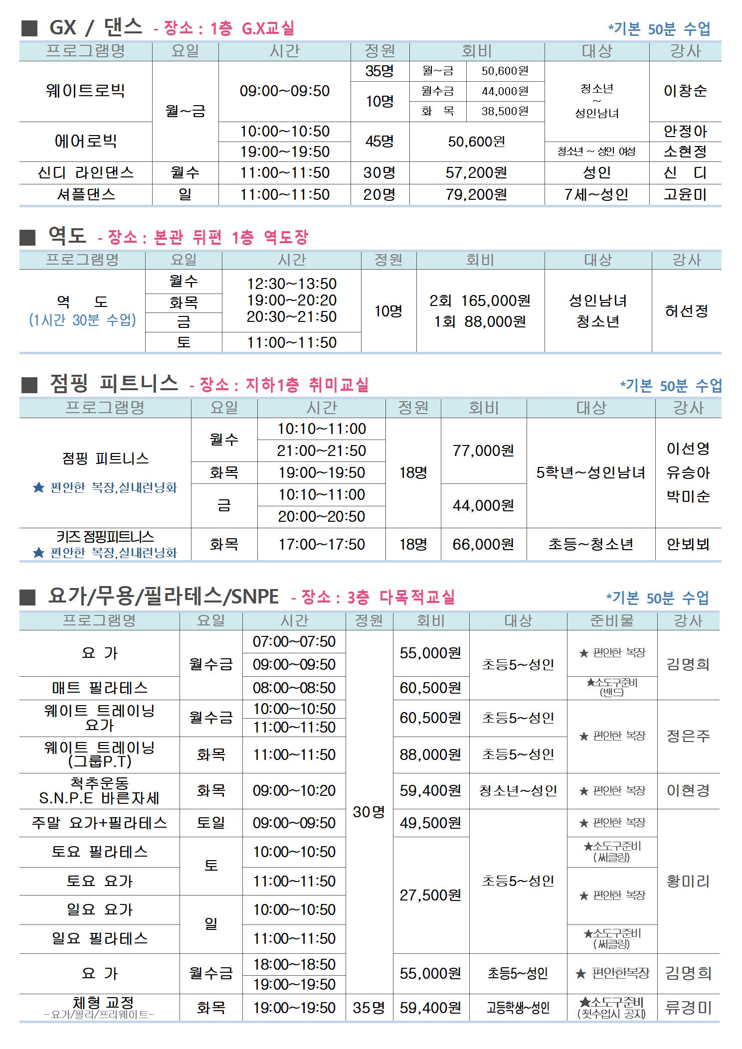 공지사항 게시판 상세 7월 접수 및 프로그램 안내 시설명 올림픽기념국민생활관 등록일 2024년 6월 19일 11시 15분 조회수 2,097 파일 제목을 입력하세요 (14).jpg [ Size : 761.02KB , Down : 197 ] 미리보기 다운로드 생활관팀 7월 운영계획 (게시용)001.jpg [ Size : 400.5KB , Down : 194 ] 미리보기 다운로드 생활관팀 7월 운영계획 (게시용)002.jpg [ Size : 364.8KB , Down : 184 ] 미리보기 다운로드 생활관팀 7월 운영계획 (게시용)003.jpg [ Size : 418.96KB , Down : 175 ] 미리보기 다운로드 생활관팀 7월 운영계획 (게시용)004.jpg [ Size : 370.07KB , Down : 178 ] 미리보기 다운로드 생활관팀 7월 운영계획 (게시용)005.jpg [ Size : 493.62KB , Down : 172 ] 미리보기 다운로드 목록보기