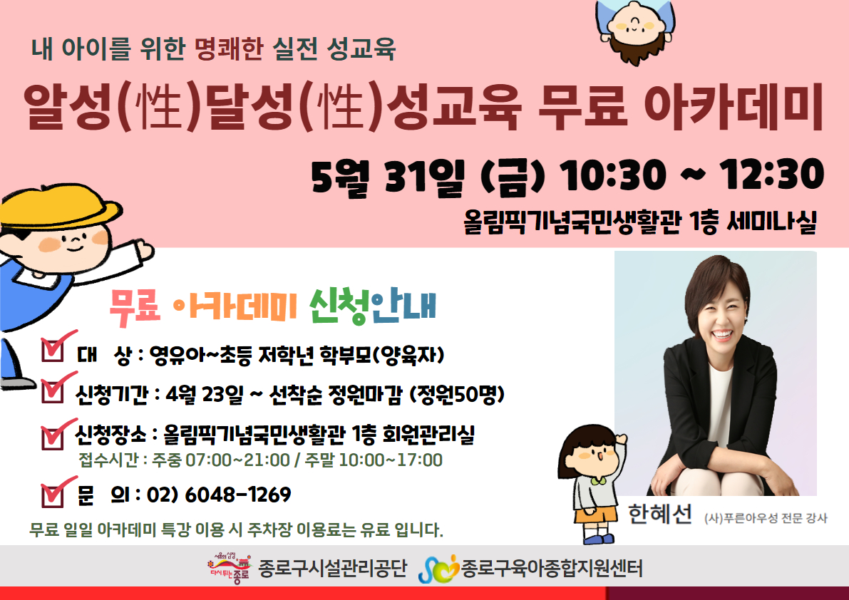 공지사항 게시판 상세 5월 <알성 달성 성교육 무료 아카데미> 시설명 올림픽기념국민생활관 등록일 2024년 4월 12일 17시 26분 조회수 492 파일 제목을 입력하세요 (14).jpg [ Size : 668.34KB , Down : 633 ] 미리보기 다운로드 목록보기