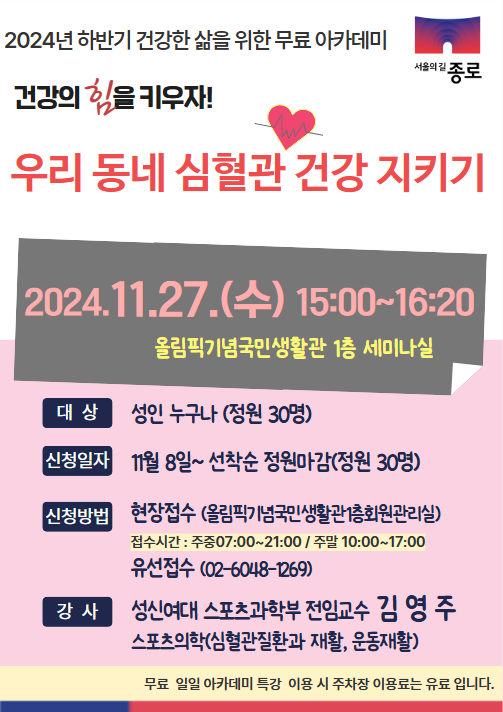 2024년 하반기 건강한 삶을 위한 무료 아카데미