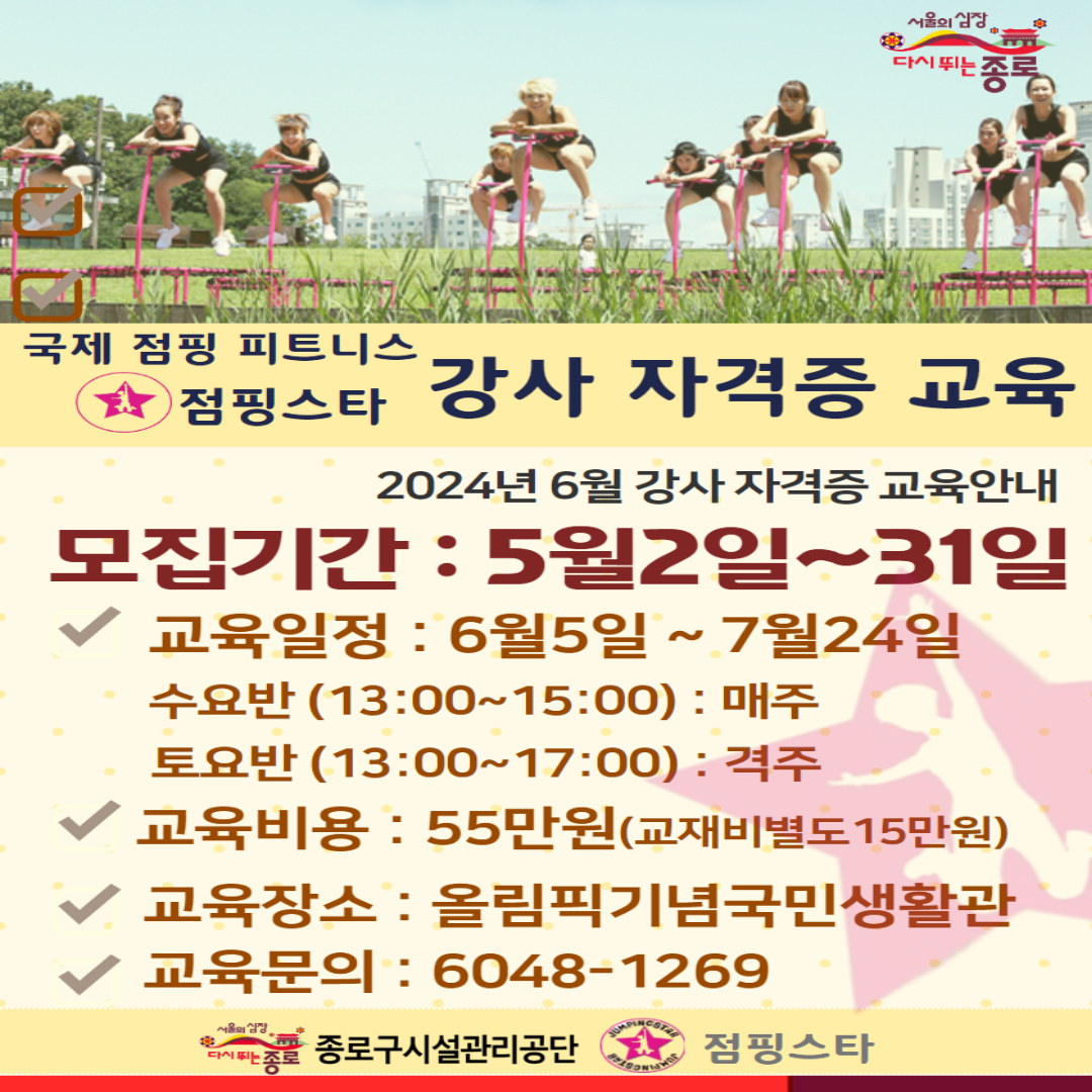 초미세먼지 좋음| 2024년 6월 점핑강사 자격증 교육안내 (점핑 자격증 교육2기 모집^^) | |||