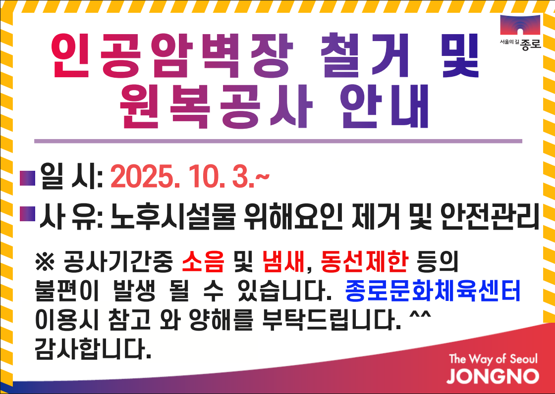 인공암벽장(클라이밍) 철거 및 원복공사 안내