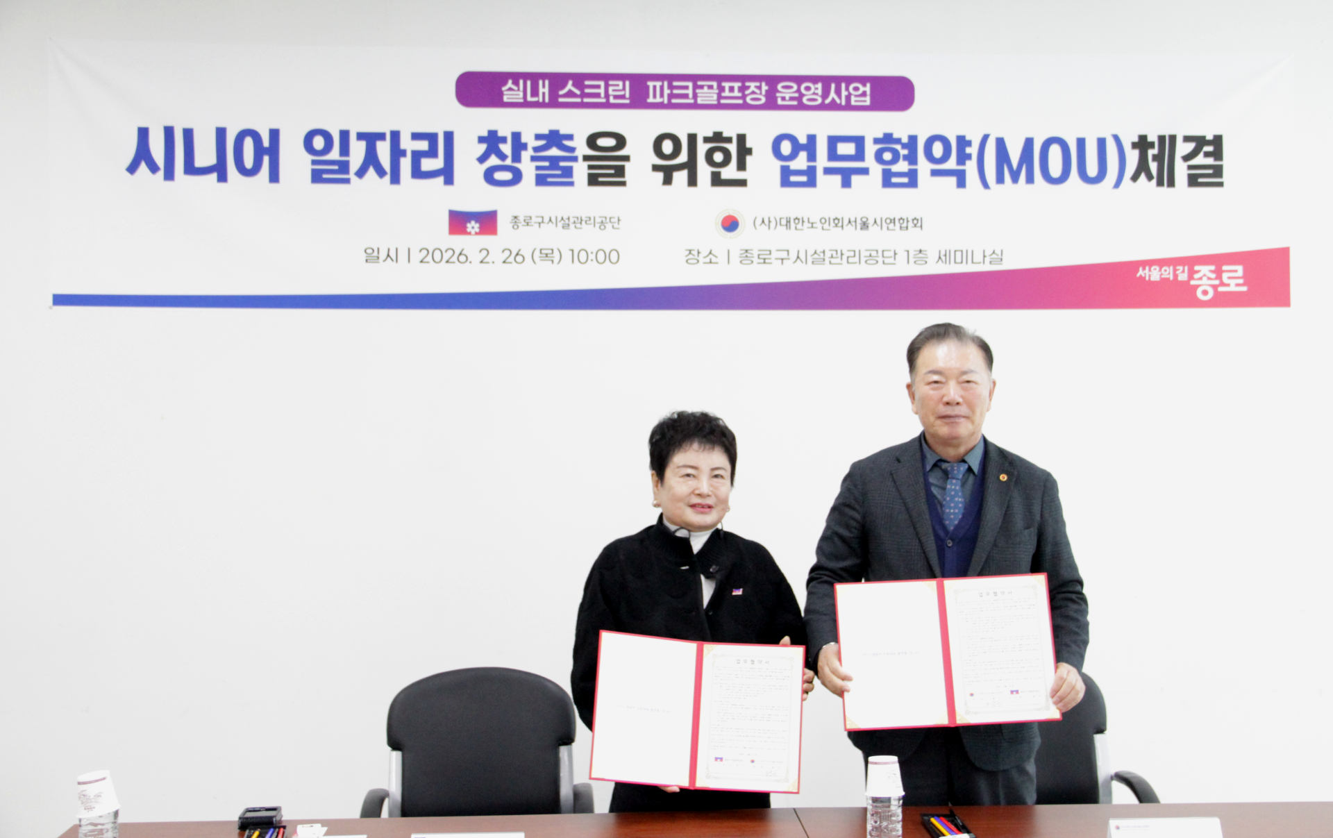 종로구시설관리공단(이사장 신영자)은 지난 26일 대한노인회서울특별시연합회와 ‘실내 파크골프 기반 시니어 일자리 확대를 위한 업무협약’을 체결했다고 밝혔다. 이번 협약은 서울시 노인복지 정책 방향과 연계하여 어르신의 건강 증진과 사회참여 기회를 확대하고, 실내 파크골프를 활용한 시니어 일자리 모델을 공동으로 발굴·운영함으로써 지속 가능한 노인복지 협력체계를 구축하기 위해 추진됐다. 협약에 따라 양 기관은 ▲실내 파크골프 프로그램과 연계한 시니어 일자리 모델 공동 개발 ▲어르신 맞춤형 직무 발굴 및 단계별 운영체계 마련 ▲안전하고 체계적인 교육 운영을 통한 전문 인력 양성 ▲지역사회 연계를 통한 사회참여 기회 확대 등에 상호 협력하기로 했다. 이를 통해 단순 참여형 활동을 넘어 자립 기반을 강화하는 양질의 일자리 창출을 도모할 계획이다. 특히 실내 파크골프는 기상 여건과 관계없이 안정적으로 운영이 가능하고, 신체 부담이 적어 어르신 건강 증진에 효과적인 생활체육 프로그램으로 평가받고 있다. 공단은 올해부터 새로 운영할 실내 파크골프 시설을 토대로 체계적인 프로그램 관리하고, 참여 어르신의 만족도 제고를 위한 지속적인 모니터링도 실시할 예정이다. 신영자 이사장은 “이번 협약은 어르신의 건강과 일자리를 동시에 지원하는 통합적 복지 모델을 구축하는 데 의미가 있다”며 “앞으로도 지역사회와의 협력을 통해 공공시설을 활용한 사회적 책임 경영을 강화하고, 어르신이 활기차고 안정된 노후를 영위할 수 있도록 적극 지원하겠다”고 밝혔다. |