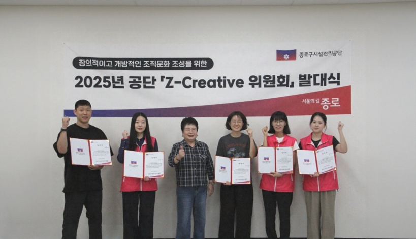 종로구시설관리공단, Z-Creative 위원회 출범 – 직원 의견을 존중하고 실행하는 소통 중심의 조직 문화 확산 – ▲ 공단 Z세대 혁신 위원회인 Z-Creative 위원회 발대식 단체사진 종로구시설관리공단(이사장 신영자)은 지난 9일, 임직원 간 소통과 조직문화 혁신을 강화하기 위해 Z세대 직원들로 구성된 「Z-Creative 위원회」를 공식 출범했다고 밝혔다. 'Z-Creative 위원회'는 Z세대의 'Z'와 창의성을 뜻하는 'Creative'의 합성어로, 젊은 직원들의 창의적인 아이디어를 조직 변화에 반영하기 위해 구성됐다. 직급, 직무, 고용형태에 구애받지 않고 자유롭게 구성되었으며 조직 내부의 다양한 의견을 수렴하고 상향식의사소통(bottom-up)을 통해 조직문화를 개선하는 새로운 소통 창구로써의 역할을 수행할 계획이다. 또한 익명성을 보장하는 운영 방식을 적용해 자유롭고 솔직한 의견 개진이 가능하도록 하여 직원들이 능동적으로 참여할 수 있는 환경을 조성하겠다고 밝혔다. 이는 장기적으로 소통 중심의 조직문화 확산 기반을 마련하고 그를 통해 내부 만족도를 높여 지속 가능한 성장 동력 확보로 이어질 것으로 기대된다. 신영자 이사장은 출범식에서 “Z-Creative 위원회가 공단의 새로운 변화를 이끌어가는 주체가 되어줄 것이라 믿는다.”며 “직원들의 의견을 귀담아 듣고 경영에 반영될 수 있도록 적극적으로 지원하겠다.”고 밝혔다. |