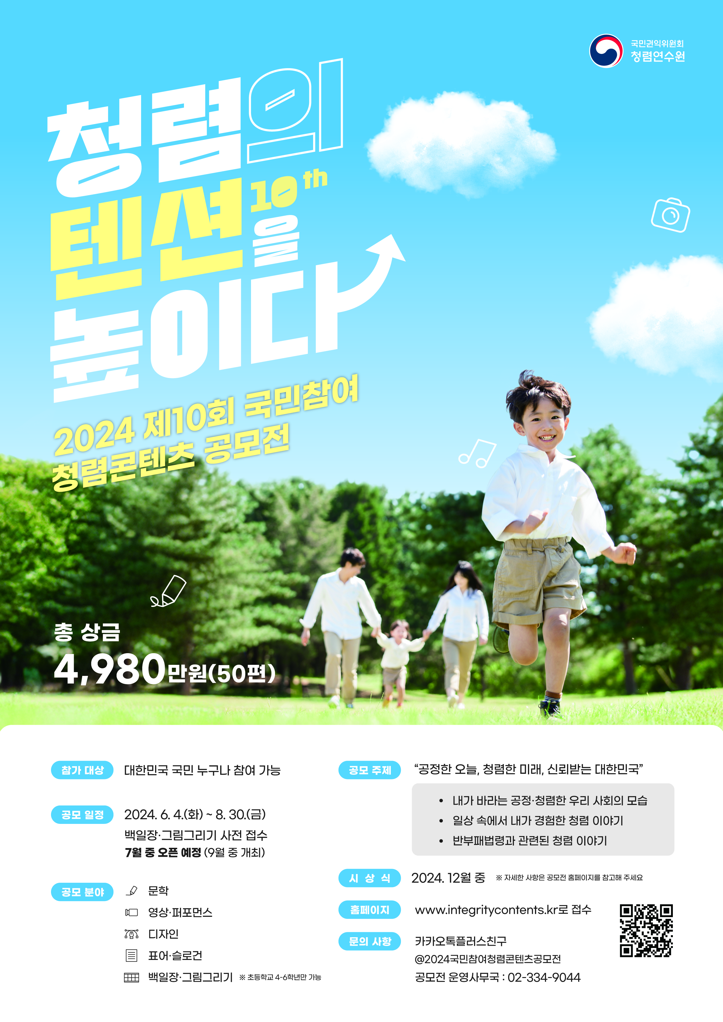 초미세먼지 좋음| 2024년 국민참여 청렴콘텐츠 공모전 안내 | |||